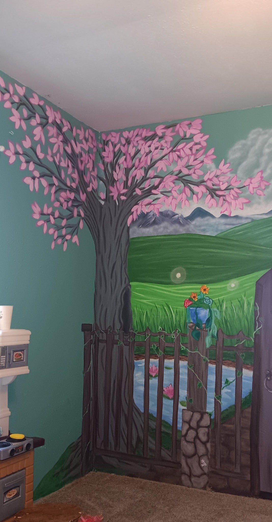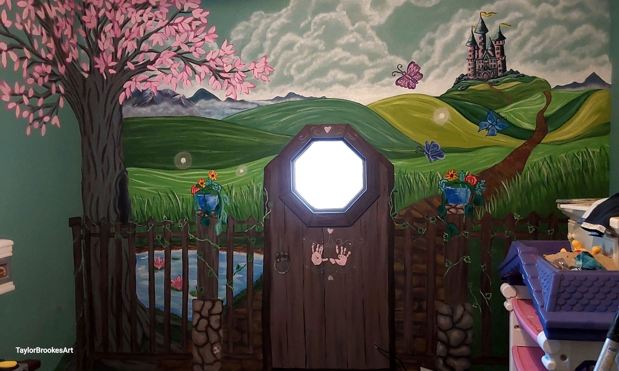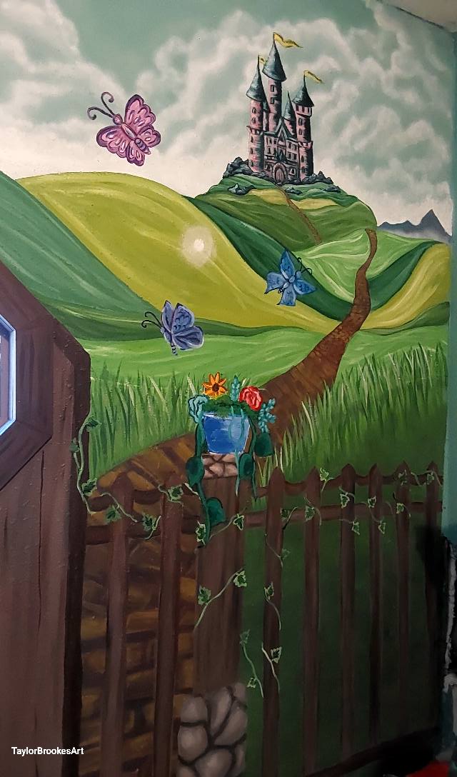 From castles , and enchanting rolling hills, this mural was made with all fantasy and magic in mind!