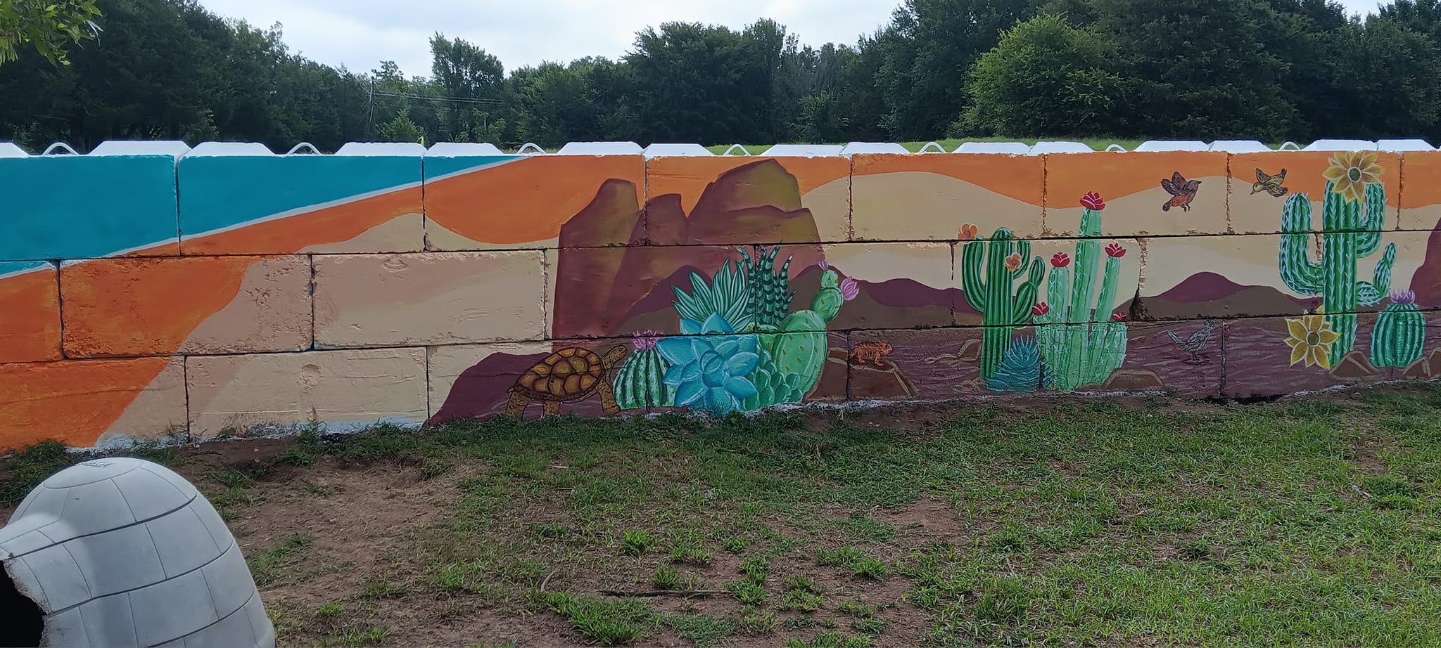 This Beauty is 153ft long and 5ft tall! The client wanted to feel at home, while being so far away. She said i miss Utah, but love Texas. however i want to soak in my pool and feel like im back at home. Through mock-ups and visions. we created a mural just as she visioned. including some of the critters she use to see running the red dirt lands.